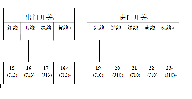 4、 連接進(jìn)門出門開關(guān)