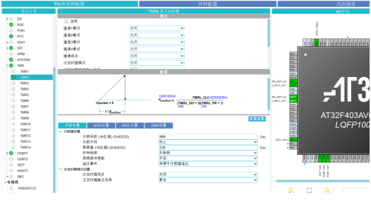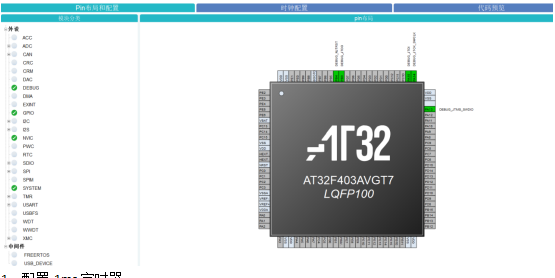 接下來就是配置相應的功能,和STM32圖形工具差不多,多了一個代碼預覽,配置完成后,可以先看看都生成了哪些文件,以及代碼內(nèi)容。